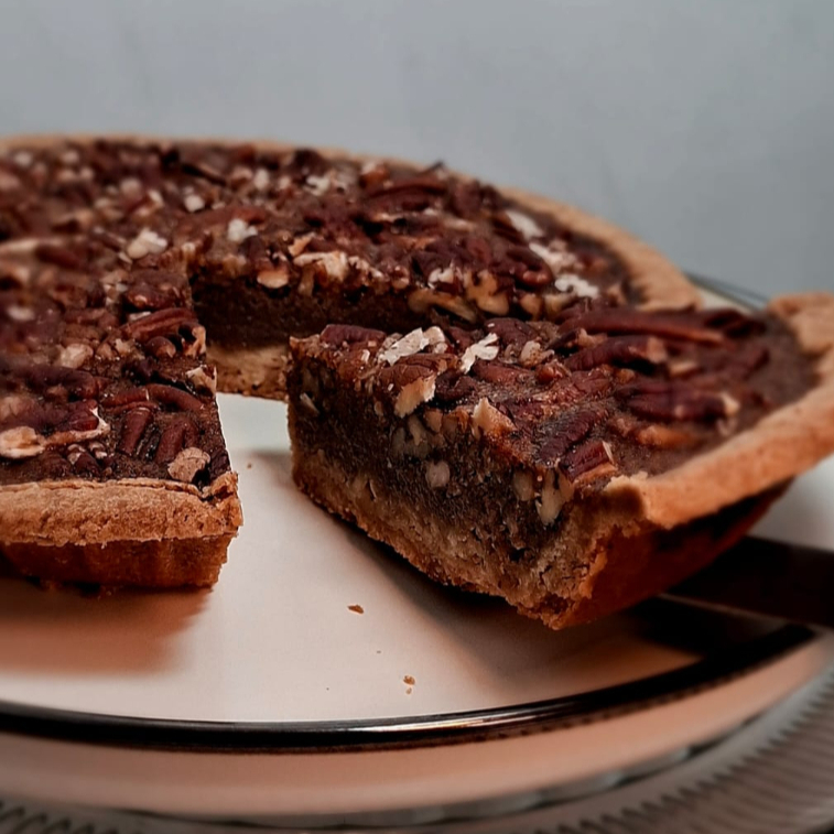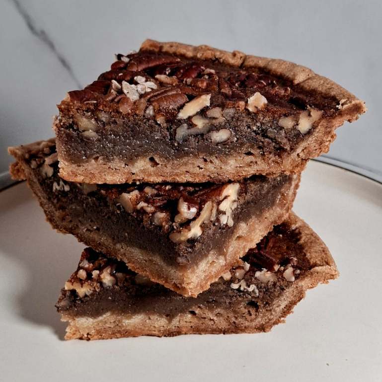 Exquisita base de galleta sablee con generoso relleno de nuez pecana