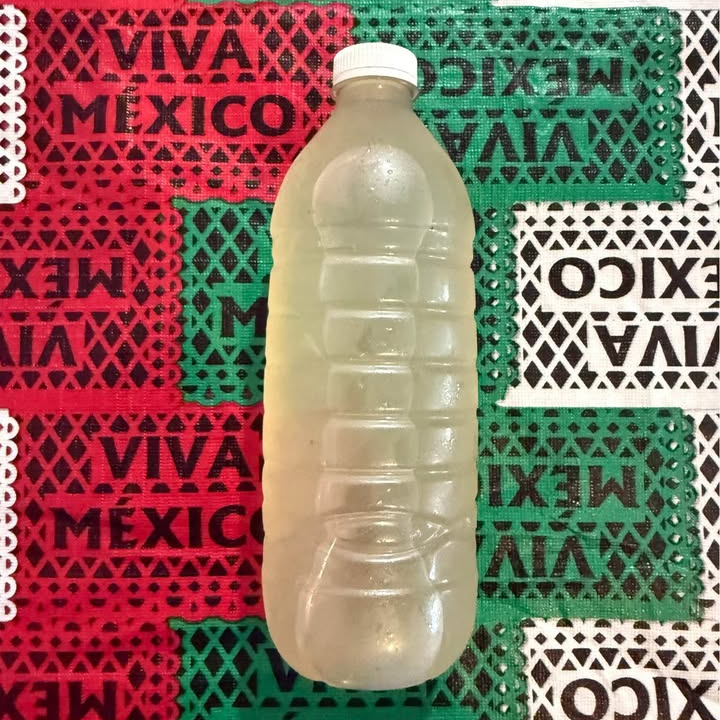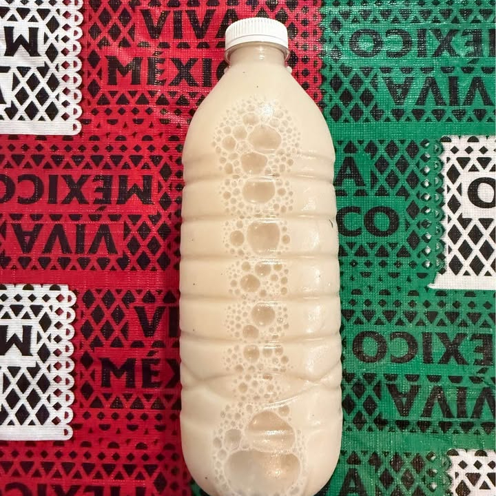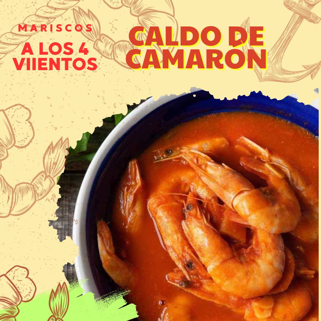 Un litro de caldo de camarón con cascara, cebolla, cilantro y limón. Incluye totopos