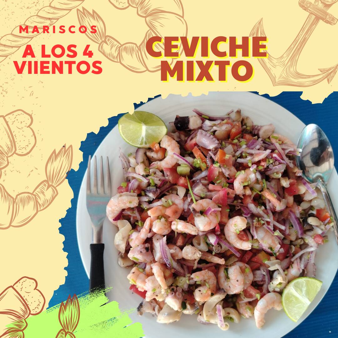 Ceviche de medio litro. Camarón, pulpo, pescado y caracol. Incluye totopos y salsa