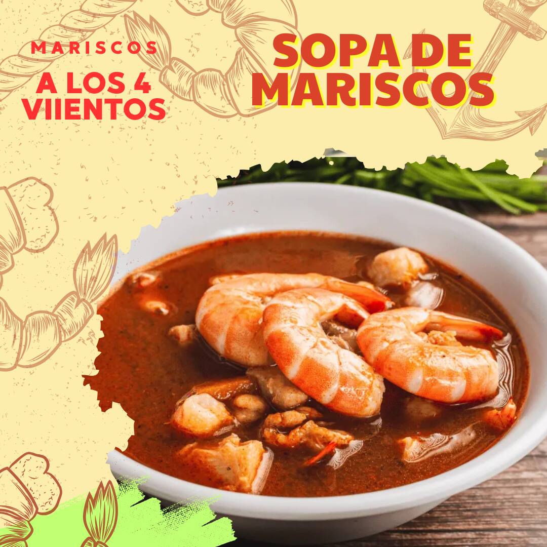 Un litro de sopa con mix de mariscos, camarón, pulpo, pescado, jaiba, ostión, mejillones. Incluye totopos.