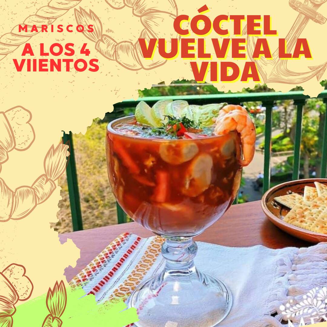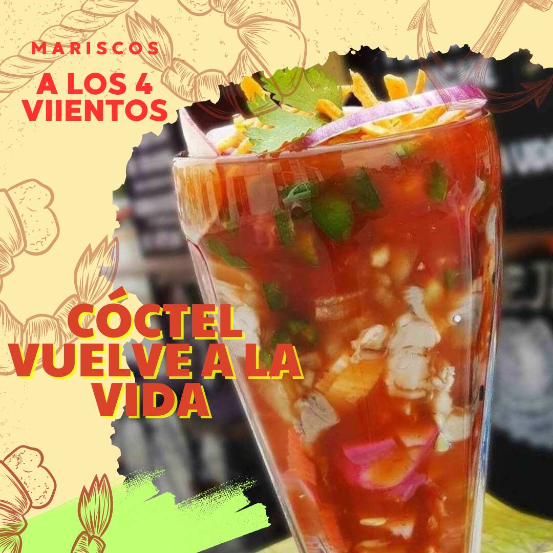 Cóctel de un litro con preparado de catsup, camarones, pulpo, pescado, ostiones, cebolla, cilantro y aguacate. Incluye totopos