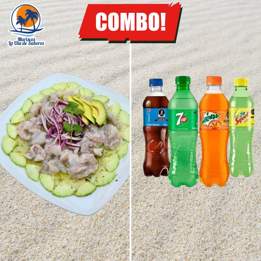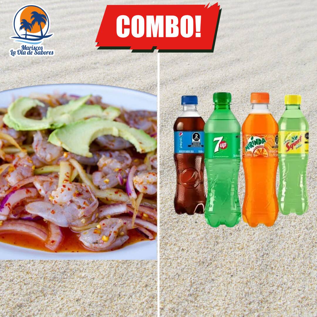 Ceviche de Camarón*1 + Refresco sabor aleatorio*1 (Pepsi, Mirinda, Manzanita, 7-Up, Squirt)