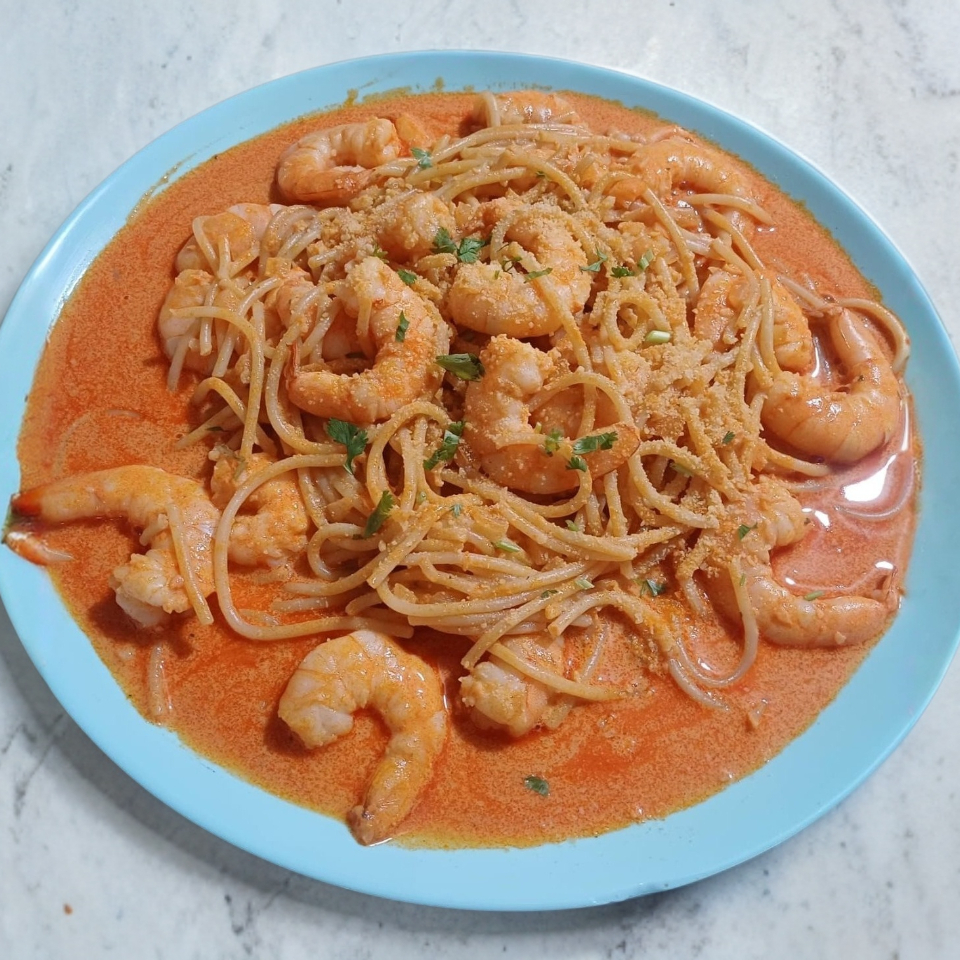 220 GM de proteínas camaron, espagueti con crema de camaron, queso parkesano y salsa habanera