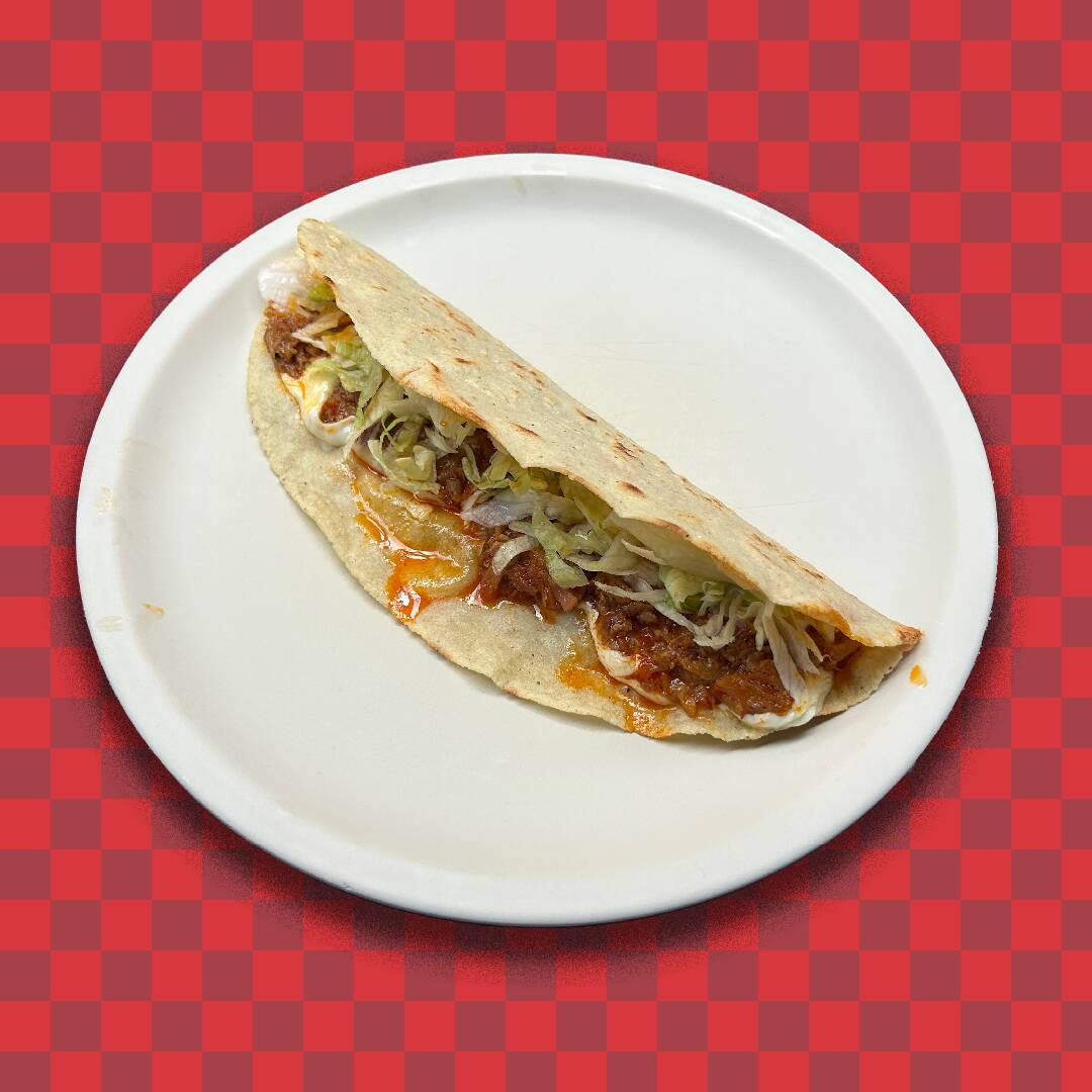 Una delicia llena de tradición. La tinga de res es cocinada lentamente en una salsa de jitomate con un toque de chipotle, lo que le da un sabor ahumado y ligeramente picante. Envuelta en una suave tortilla hecha a mano, acompañada de lechuga y media crema, ofrece el inconfundible sabor casero que todos aman.