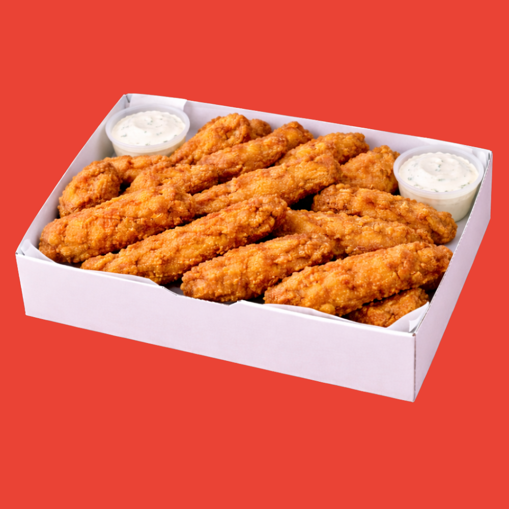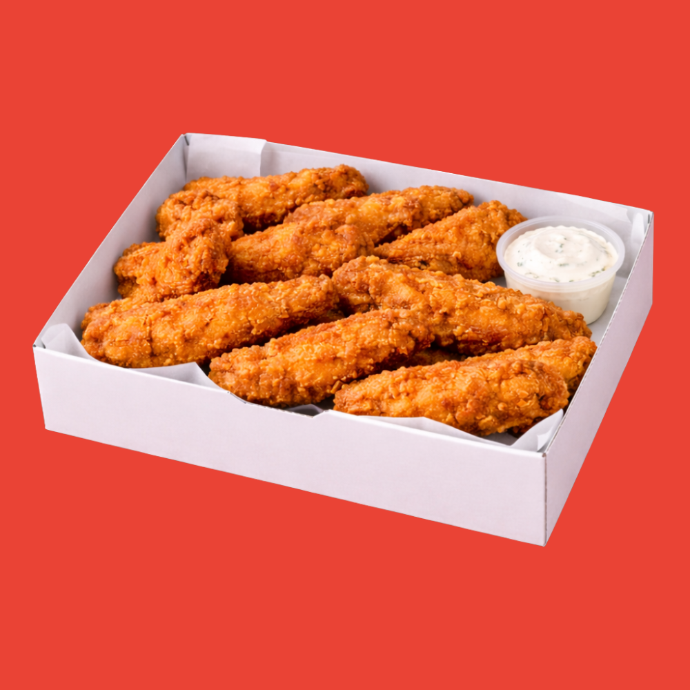El tamaño perfecto para uno, incluye entre 250 g de tenders con cubierta crujiente, bañadas en la salsa de tu elección y acompañadas de ranch cremoso, ideal para un antojo personal.