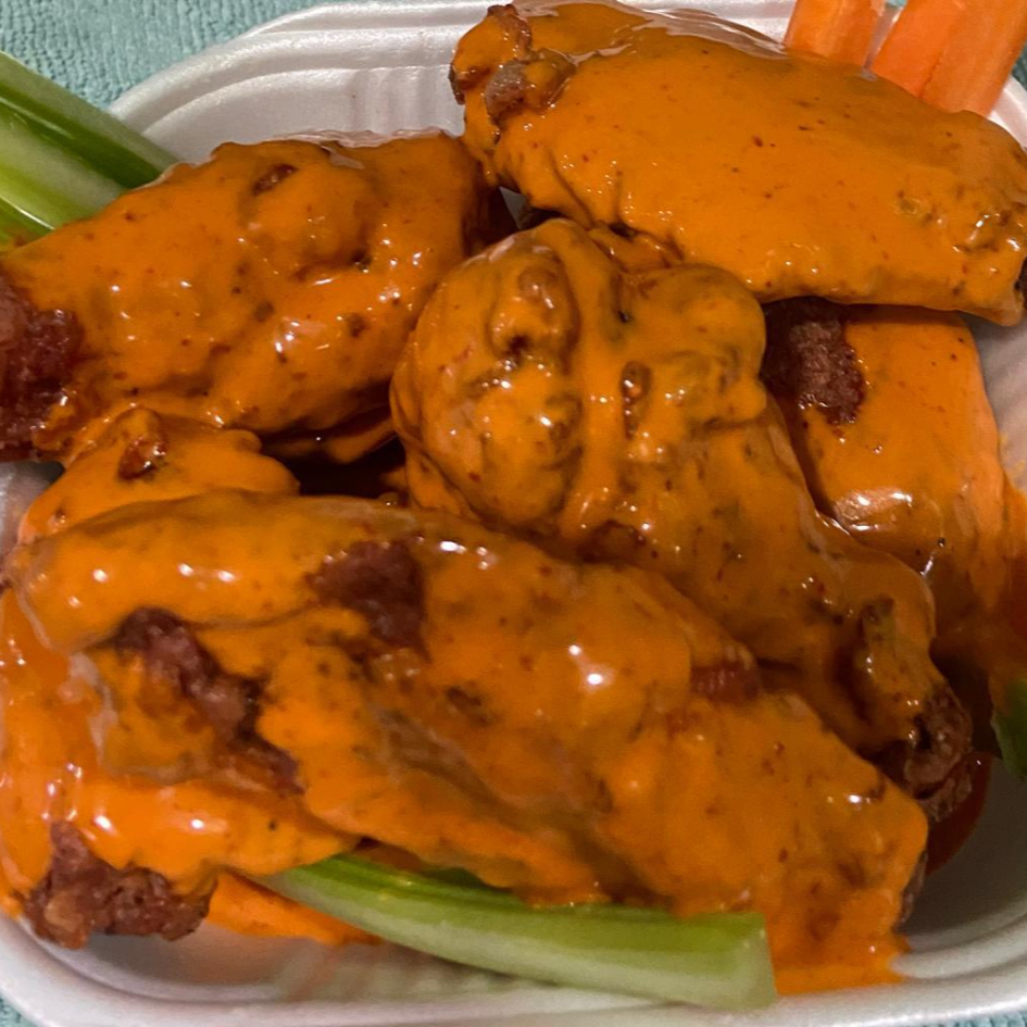 Una orden de alitas con su salsa hecha de la casa sabor mango abanero
