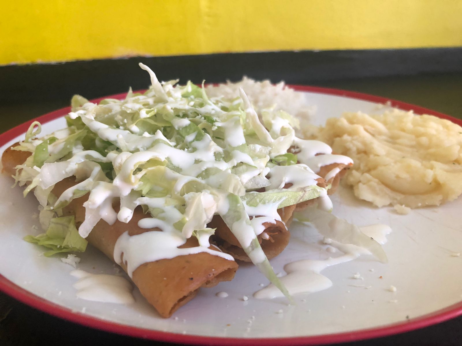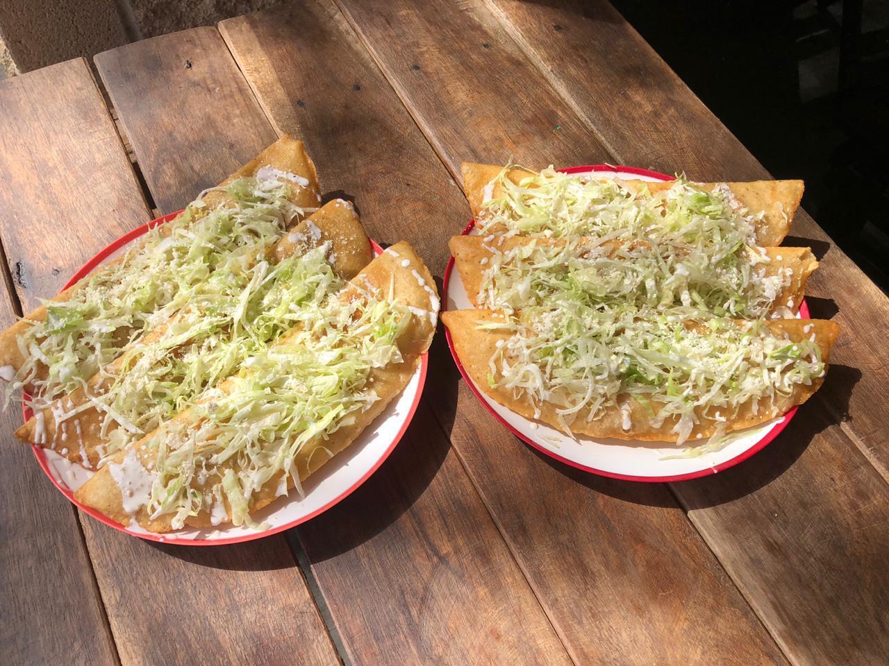 Crujientes tacos dorados con 2 guarniciones a elegir, se sirven con lechuga crema y queso. Todos nuestros alimentos son preparados al momento.