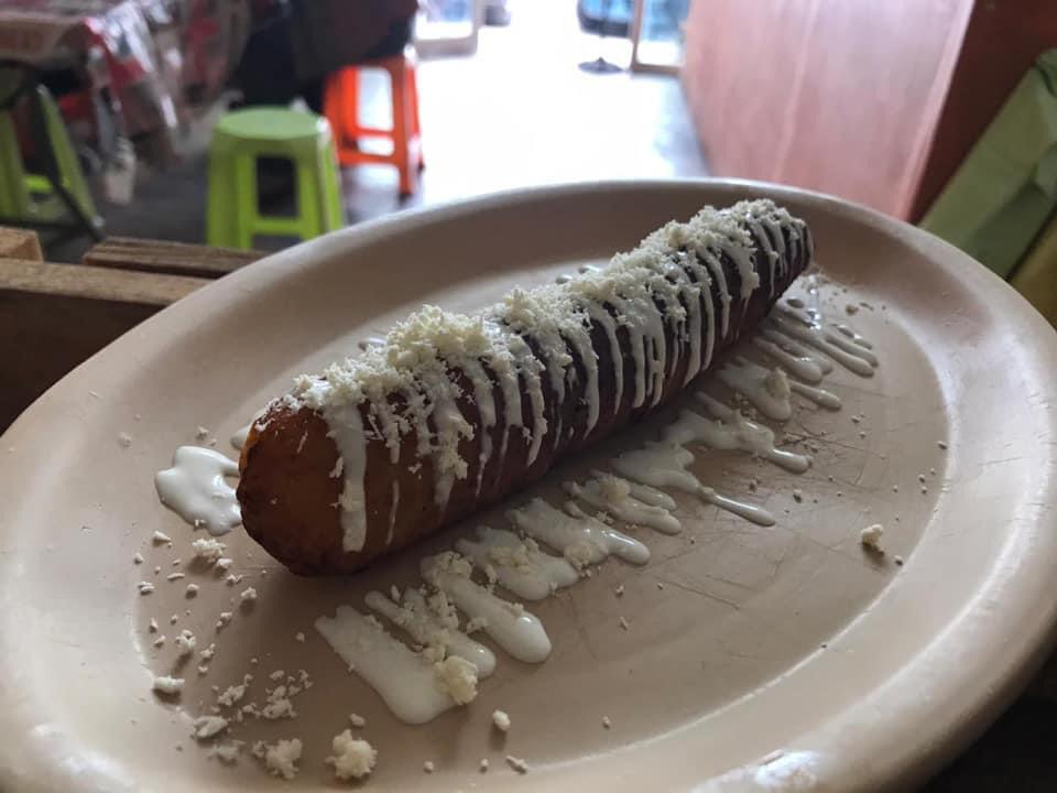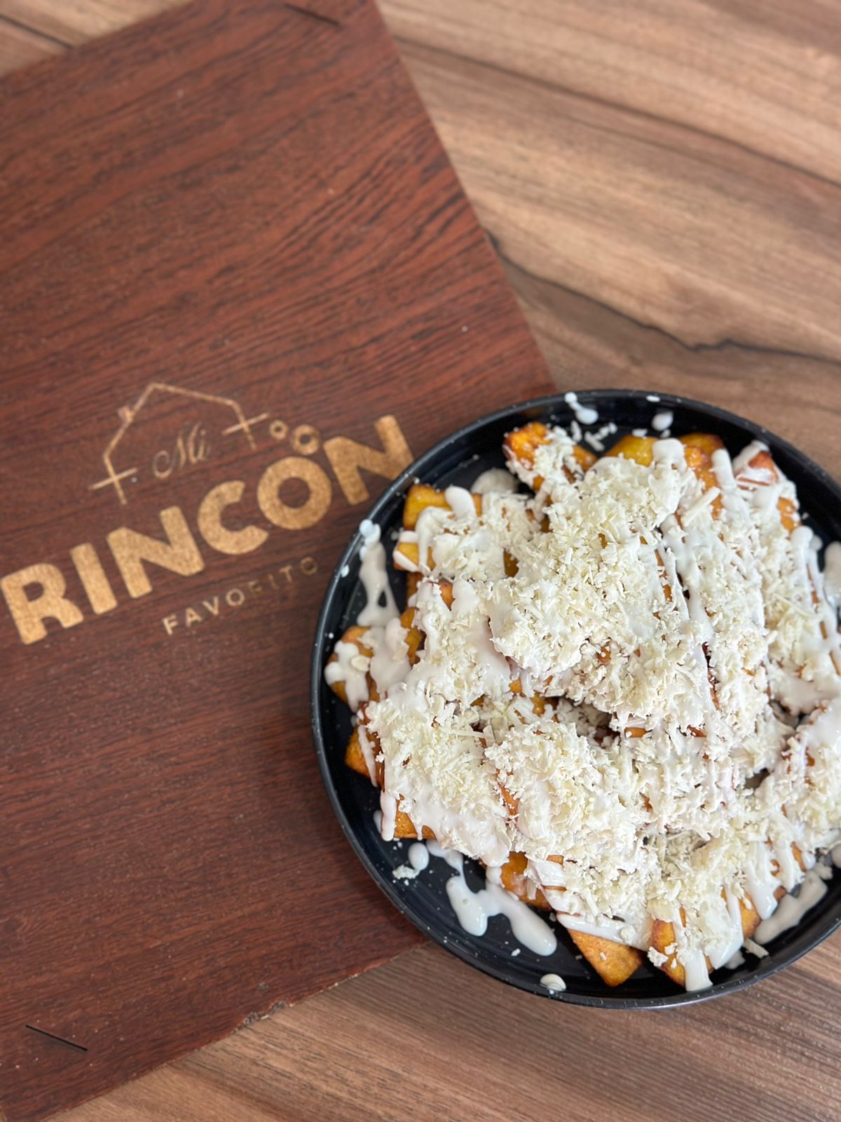 Orden de platanitos fritos servidos con crema y queso. Todos nuestros alimentos son preparados al momento.