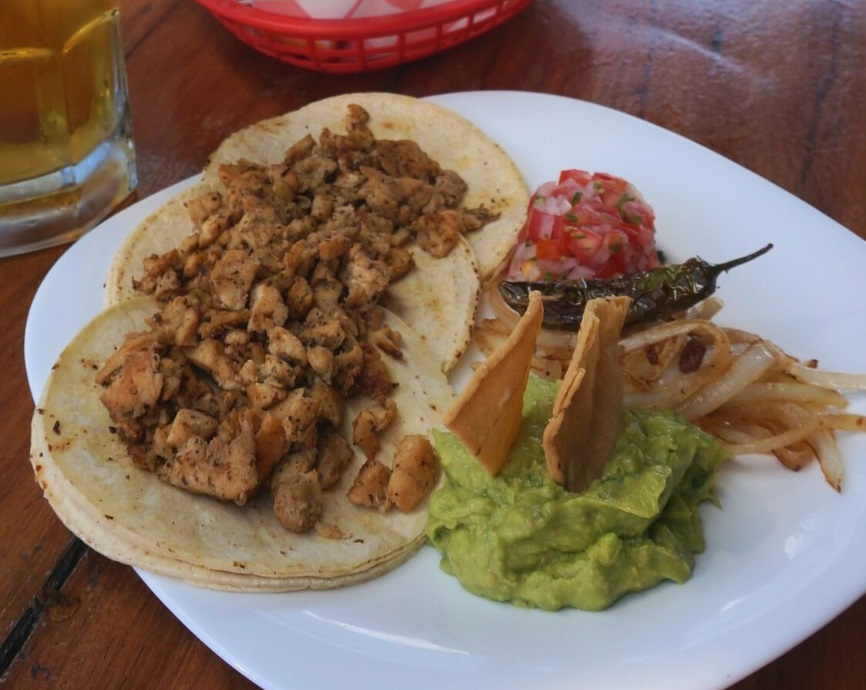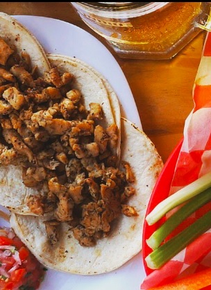 3 Tacos en tortilla de maíz o harina, salsa mexicana, guacamole y chiles toreados.