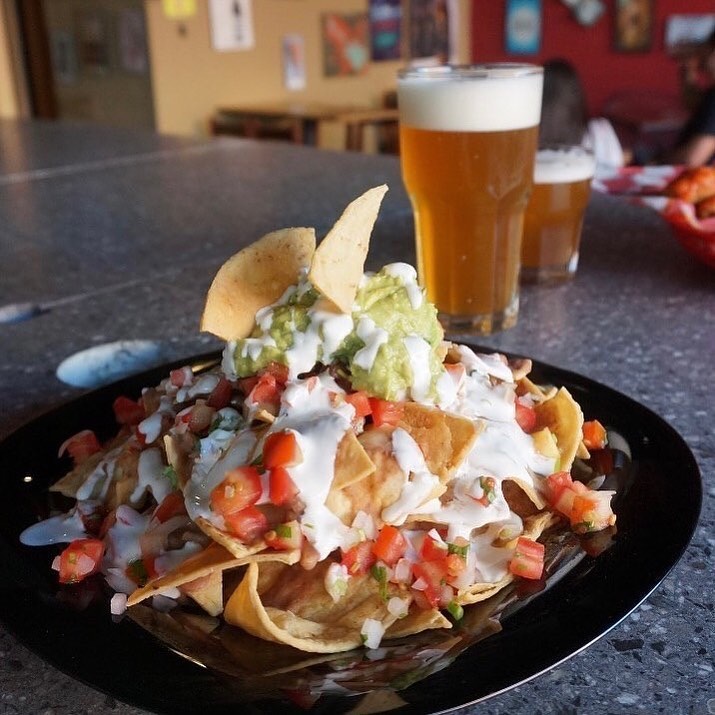 Nachos en salsa de frijol, queso gratinado, guacamole y pico de gallo.