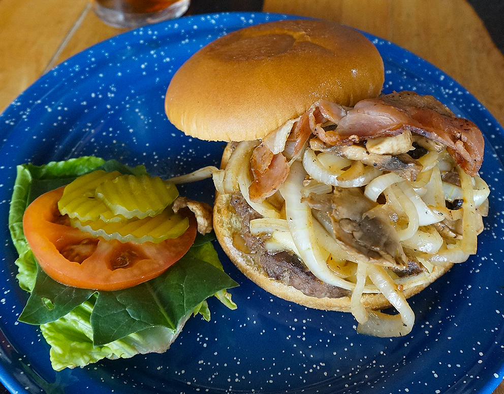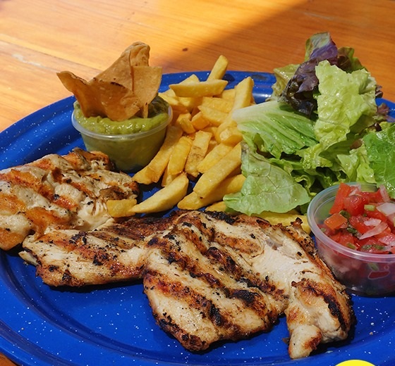 200 gr. de carne de sirloin con queso manchego y vegetales frescos (natural o BBQ). Incluye papas fritas.
