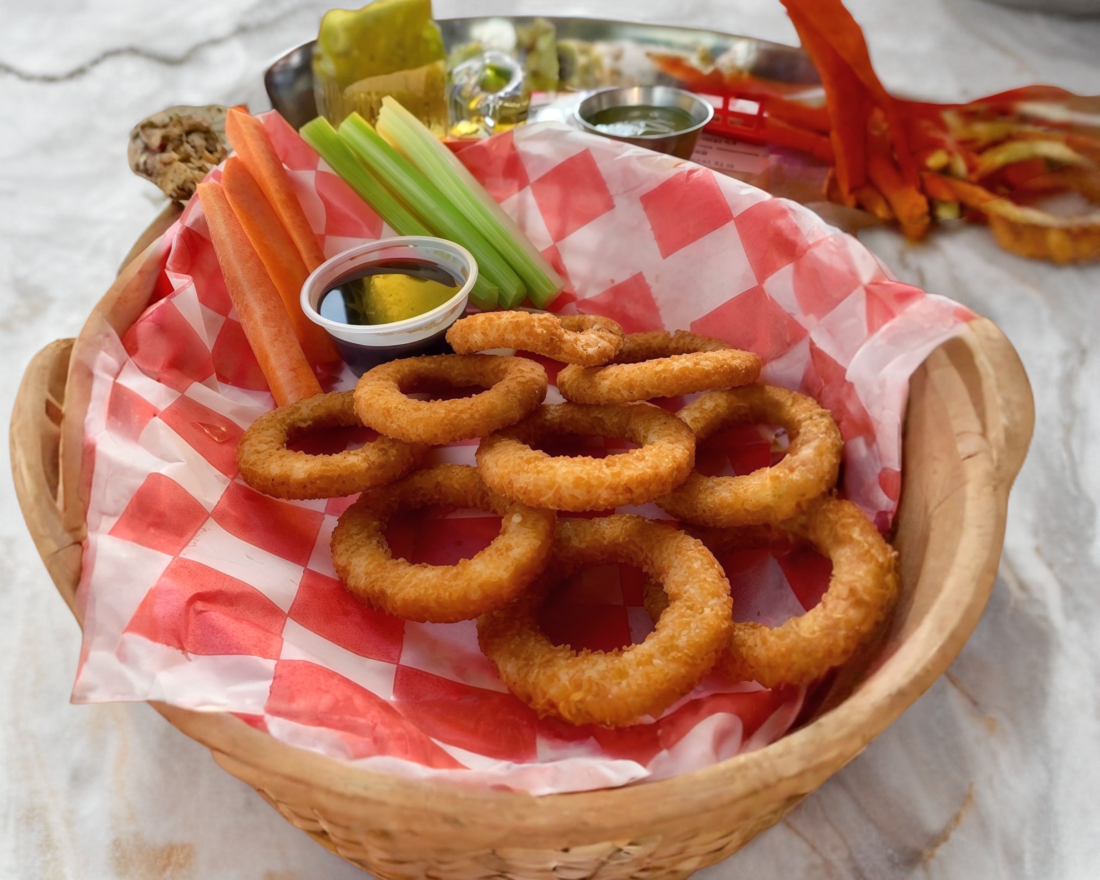Jugosa pechuga de pollo empanizada, queso manchego y vegetales frescos (natural, BBQ y buffalo), incluye papas fritas.