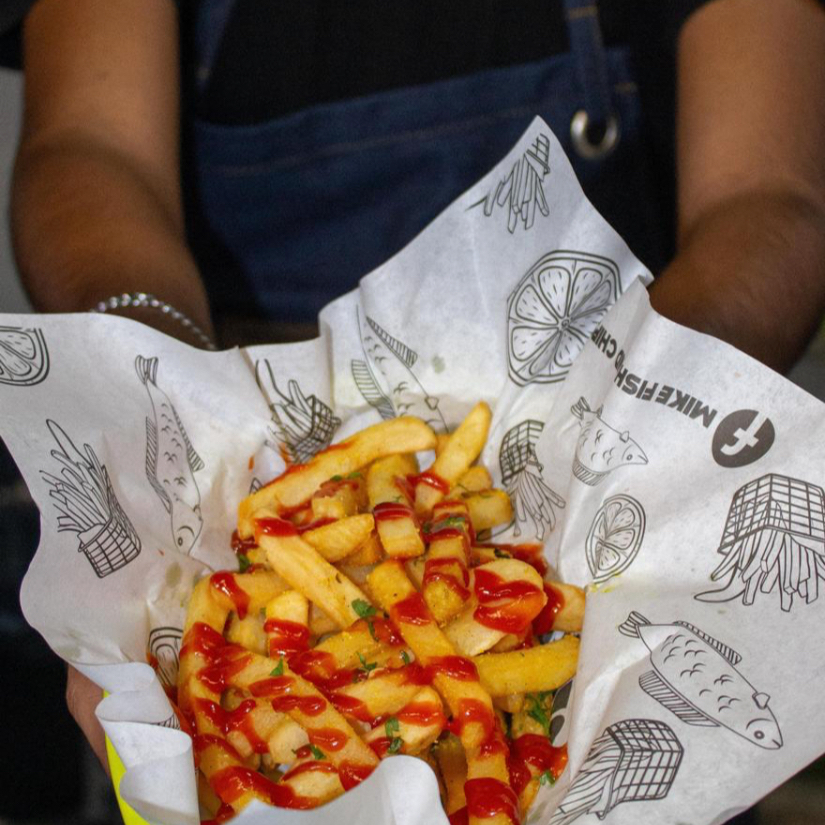 240gr de deliciosos Camarones rebozados en harina, especias y cerveza oscura, acompañados de 250gr de Papas a la Francesa, salsa tártara y crema de habanero picante