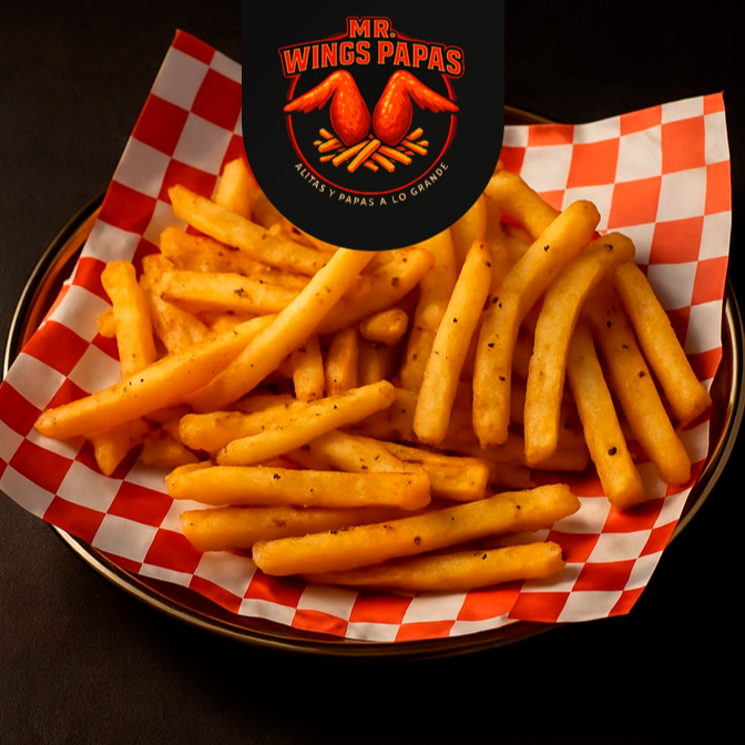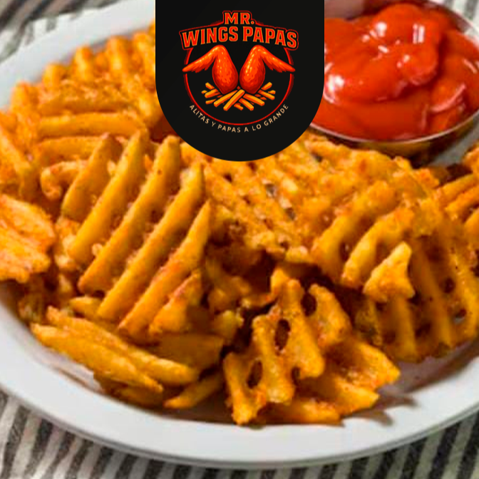 Papas estilo rejilla o waffle, fritas y acompañadas de capsu