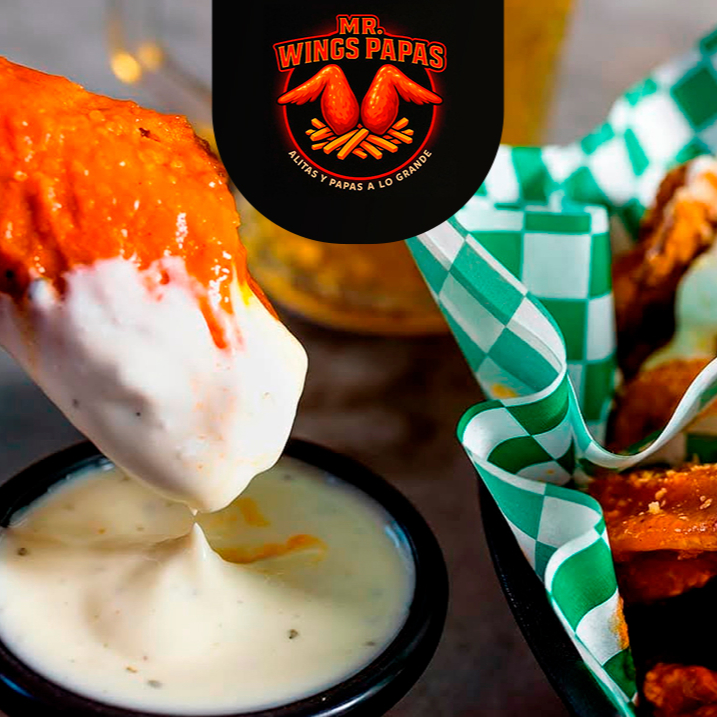 5 Alitas de buen tamaño, jugosas, crujientes y bien bañadas en la salsa de tu elección acompañadas de aderezo, zanahoria y apio.