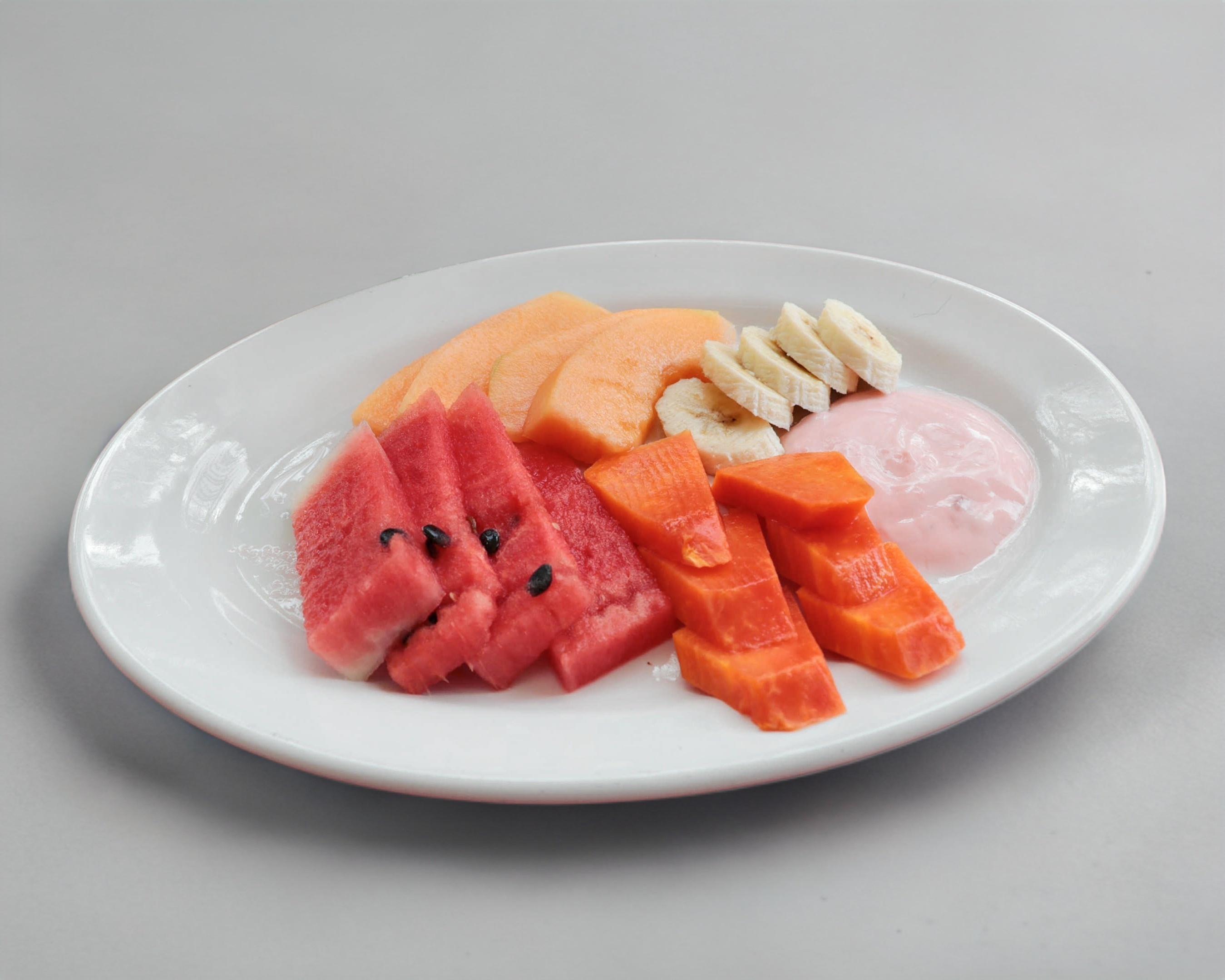 Incluye melón, sandía, papaya y plátano.
