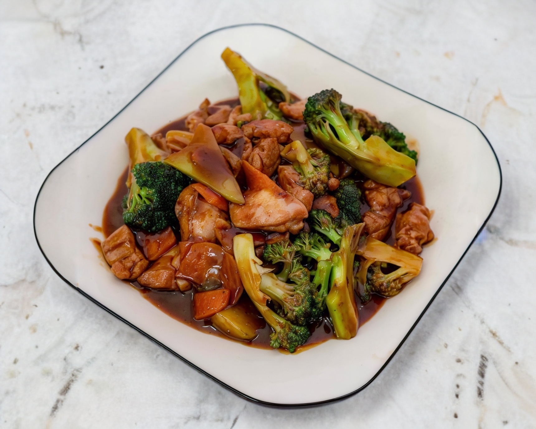 Orden de pollo cantonés más un complemento a elegir arroz o pasta (900 g aprox.).