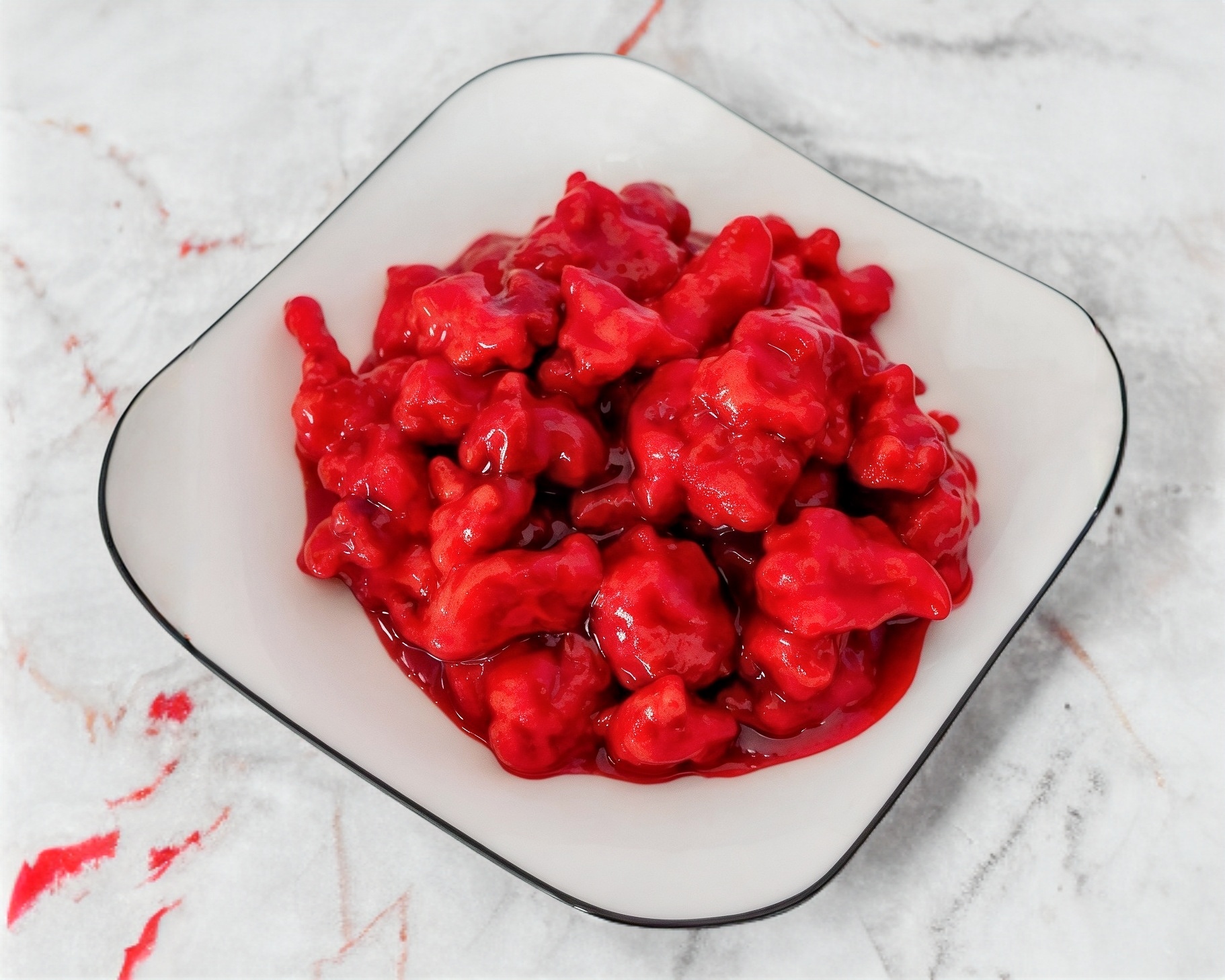 Orden de pollo agridulce más un complemento a elegir arroz o pasta (para 2 personas), (900 g aprox.), salsa a elegir entre soja, picante y agridulce.