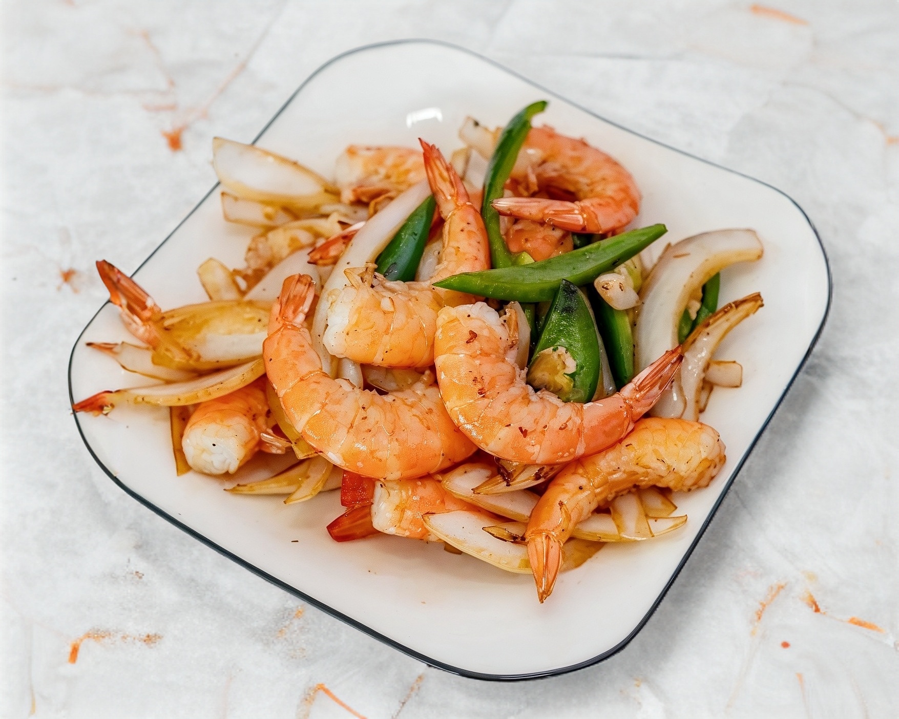 Orden de camarón picante más un complemento a elegir arroz o pasta.