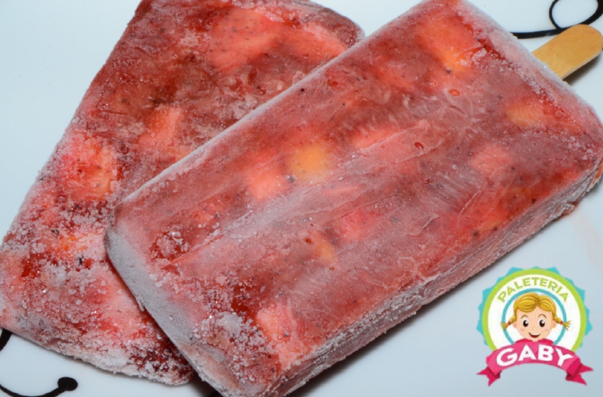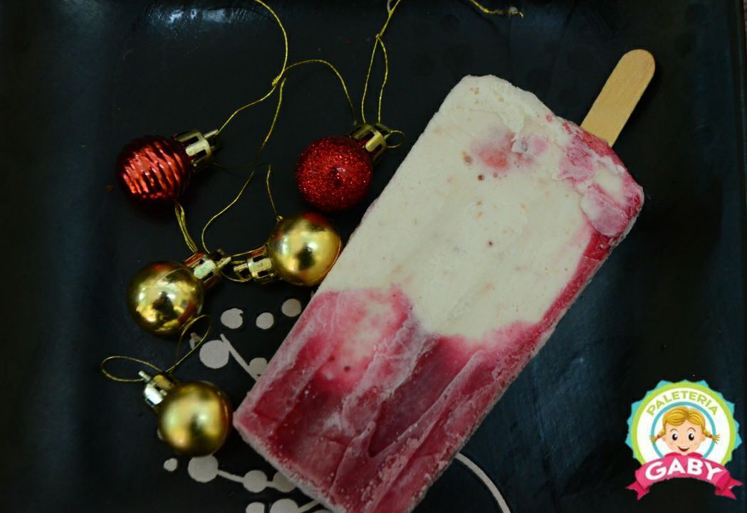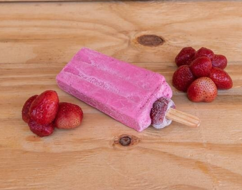 Paleta de vainilla con fresa chica a base de agua de 80gr