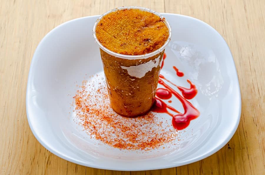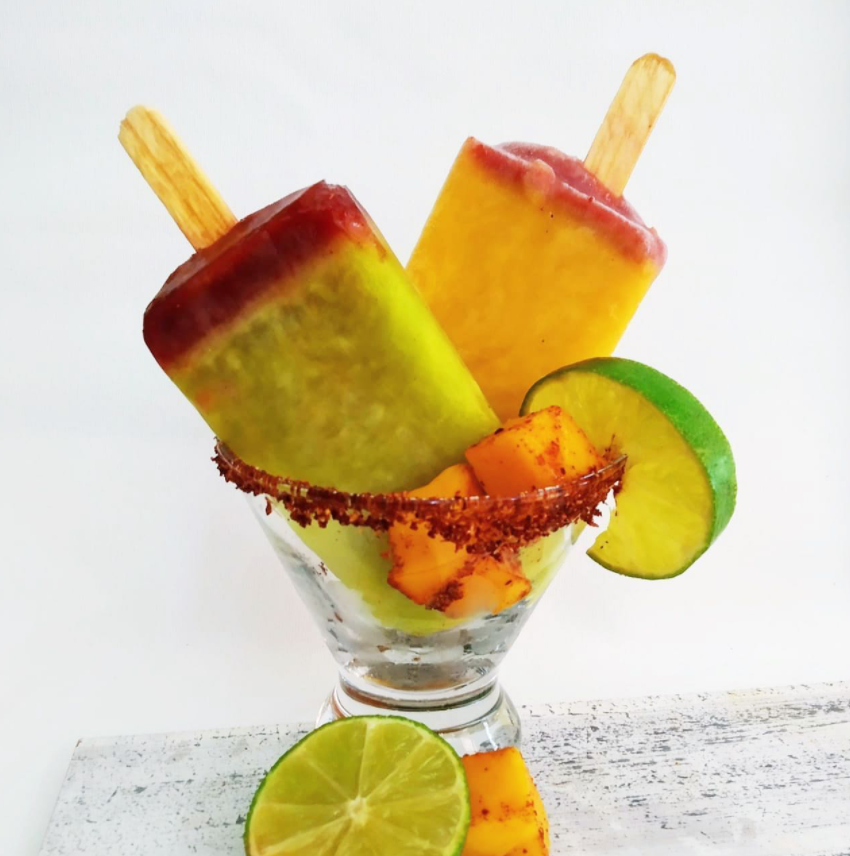Jícama, piña y mango con chamoy. Paleta grande de 120 gramos 100% fruta natural.