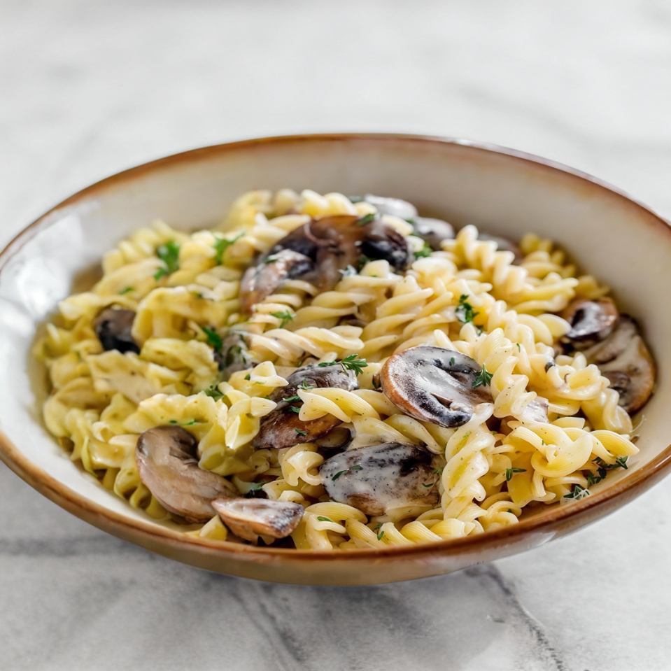 Pasta salteada con champiñones, tocino, cebolla, ajo, chile quebrado, perejil fresco y queso parmesano. (De 450g a 500g)