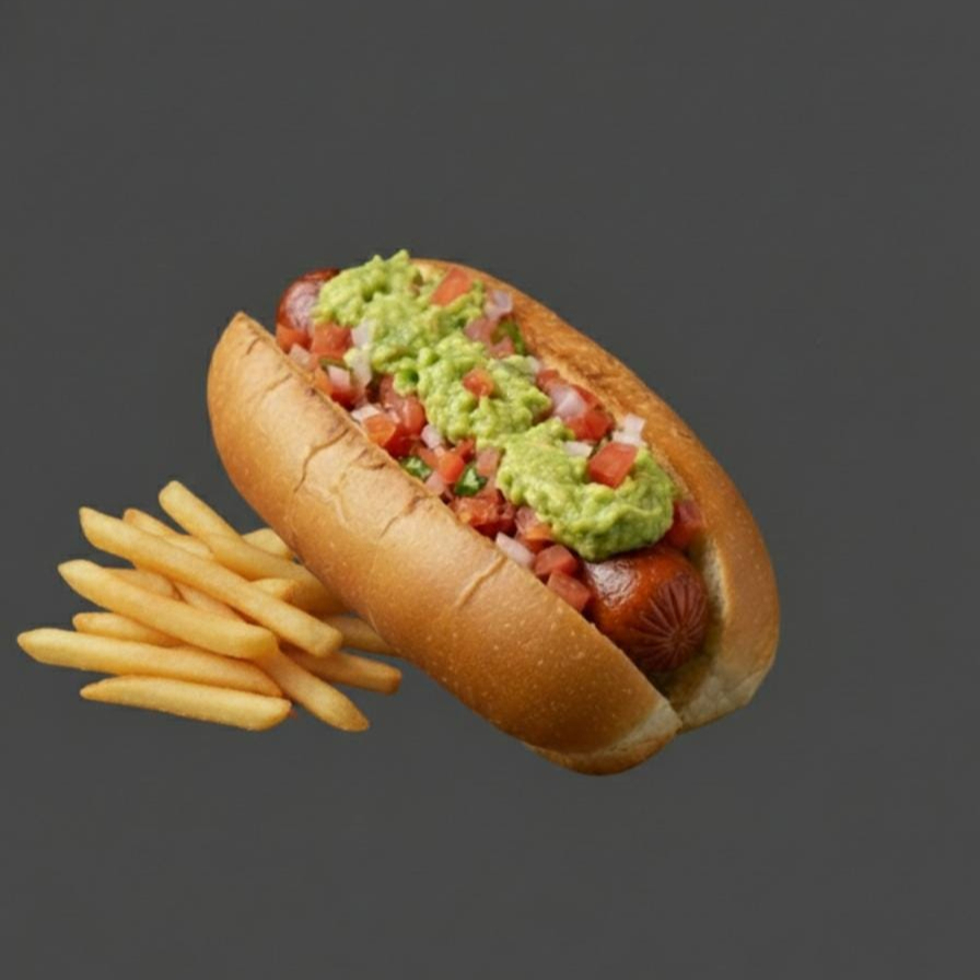 Rica salchicha frita con sabritas fuego, cubierta con un exquisito guacamole a la mexicana y su respectiva mayonesa.Incluye papas 🍟🌭