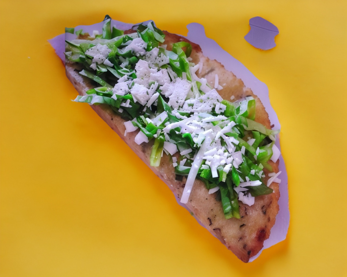raja a base de chile poblano guisadas con cebolla, Tortilla masa de maíz, queso oaxaca, lechuga y crema