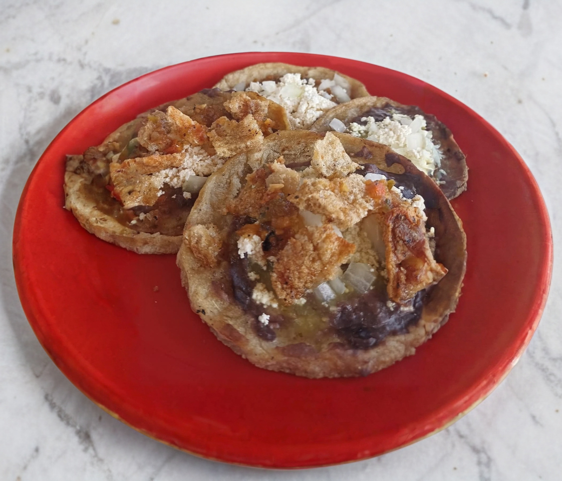 Masa frita en manteca de cochi y salsa de frijol.