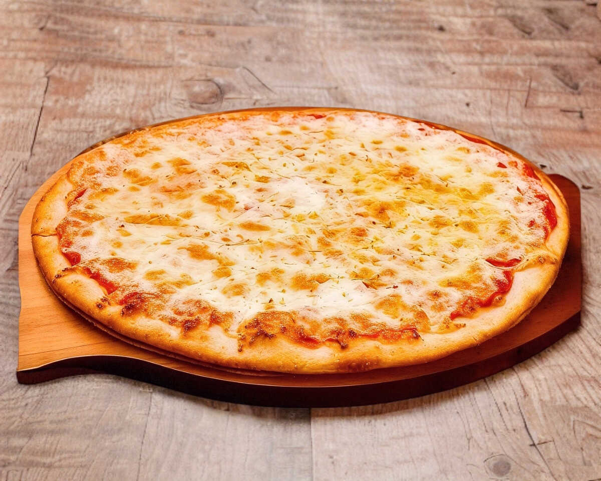 Pizza grande con Queso mozzarella, Queso Gouda y Queso Daysi (Orilla de ajo opcional)
