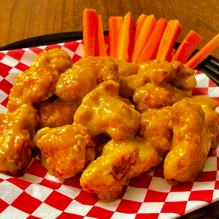 8 Piezas Boneless salsa de tamarindo habanero, incluye porción de papas, aderezo, Zanahoria y Apio.