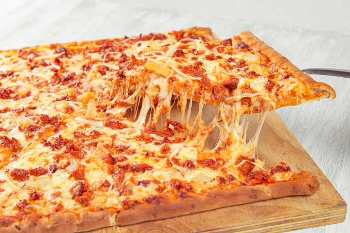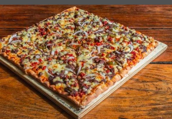 Queso mozzarella, arrachera, chorizo, tocino, pepperoni y pimiento verde.