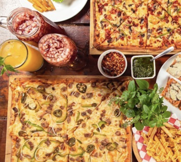 ¡Nuevo en el menú! Deliciosa pizza cubierta de boneless marinados en tu salsa favorita: BBQ, hot, habanero, mango habanero, tamarindo habanero. Aderezo a elegir: ranch o queso azul.