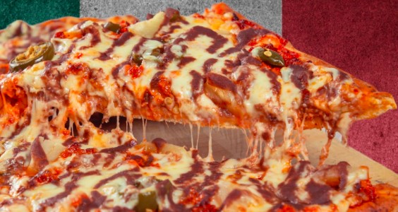 Pizza mediana de queso mozzarella, carne al pastor, un toque de frijol, piña y jalapeños.
