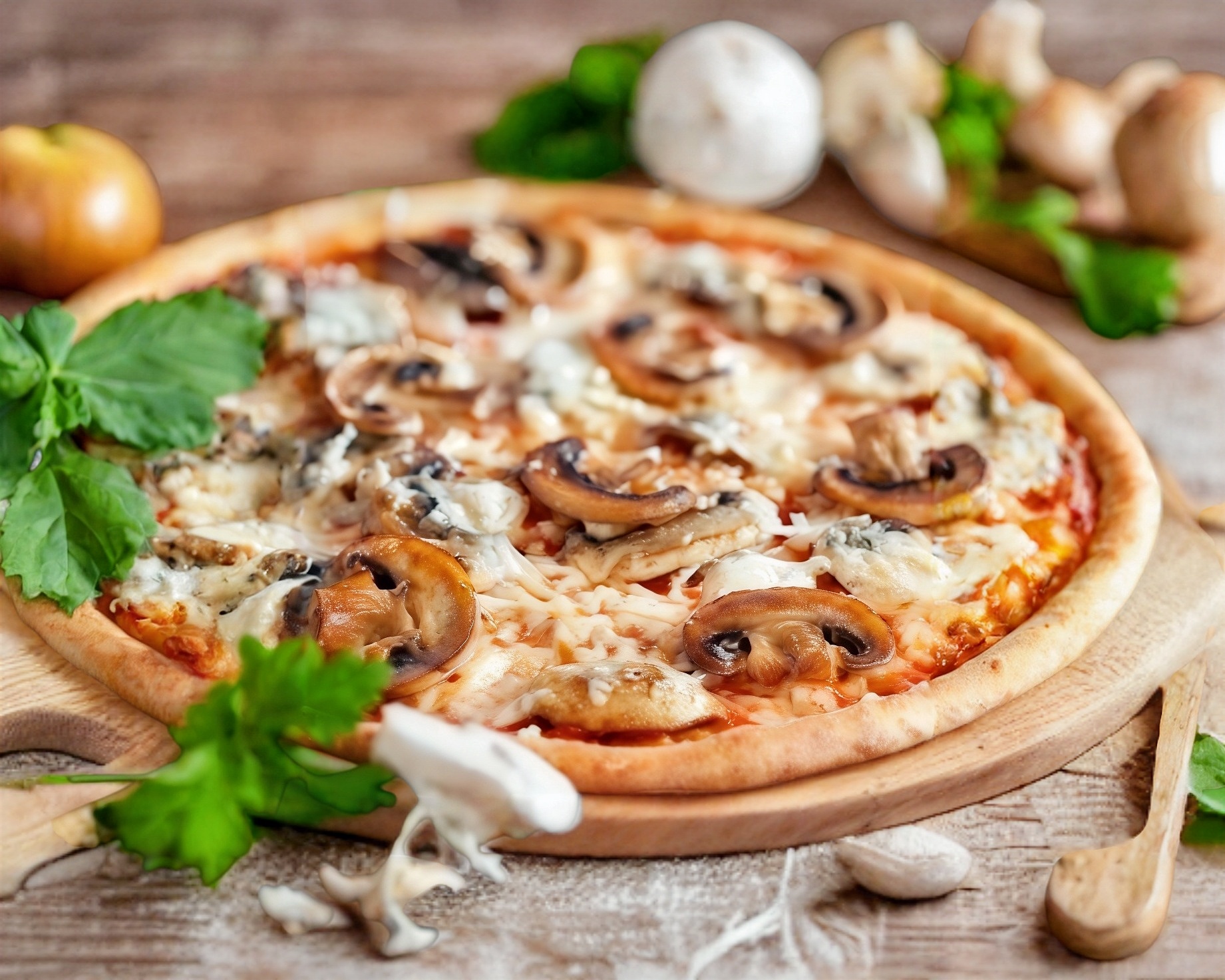 Pizza artesanal de 35cm con champiñones.