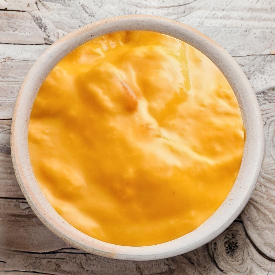 "Cheddar espeso, cremoso y bien sabrosito. El clásico que nunca falla para subirle el crunch a tus papas, tenders o boneless. (Porción: 2 oz)"