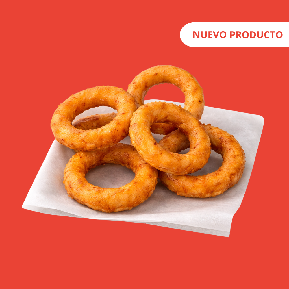 "Cinco aros de cebolla doraditos, crujientes y llenos de sabor. Perfectos para botanear algo padre y diferente. Incluyen su dip de chipotle cremoso, el match ideal para el crunch. (Porción: 5 piezas + cup de chipotle cremosa de 2oz)"