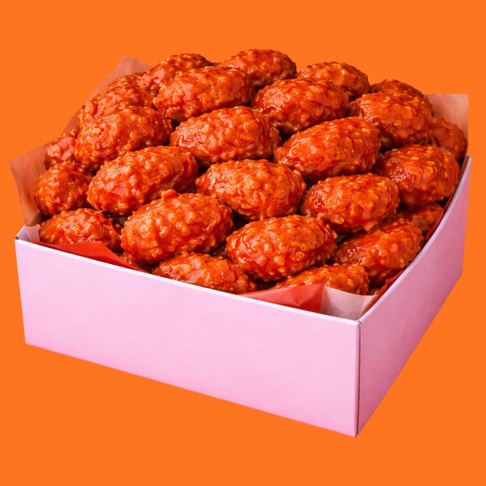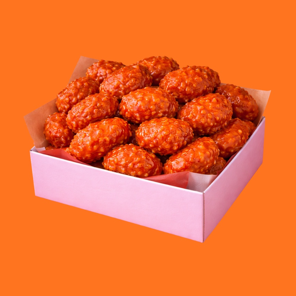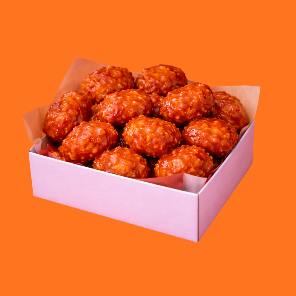 "Nuestra porción más generosa: boneless grandes, crujientes y llenos de sabor, ideales para compartir o para los amantes del crunch. Incluye hasta cuatro salsas para que armes momentos padres y llenos de sabor. Ranch incluido para coronar cada dip. (Porción: 1 kg/ 2 ranch)"