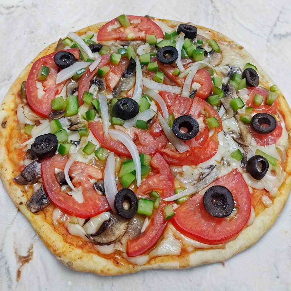 Masa casera, Pimientos Verdes, Champiñones frescos, Cebolla, Jitomate y piña.