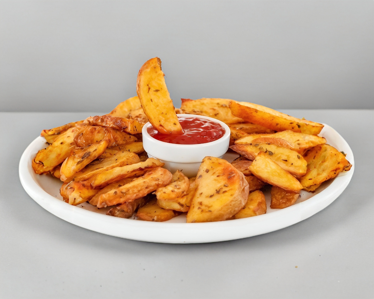 DELICIOSAS PAPAS DE GAJO HORNEADAS, ACOMPAÑADAS DE QUESO CHEDAR Y BOTANERA.(.200 grs)