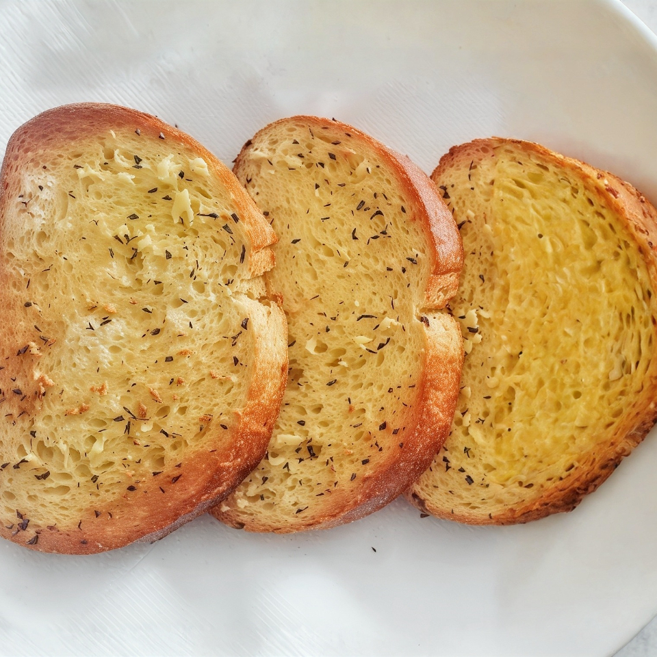MANTEQUILLA CON AJO UNTADA SOBRE EL PAN HORNEADO CON QUESO MOZARELLA GRATINADO