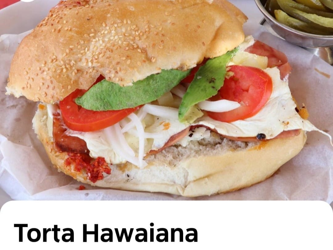 Telera grande, frijol, mayonesa, jamón, queso lechuga, jitomate y cebolla.