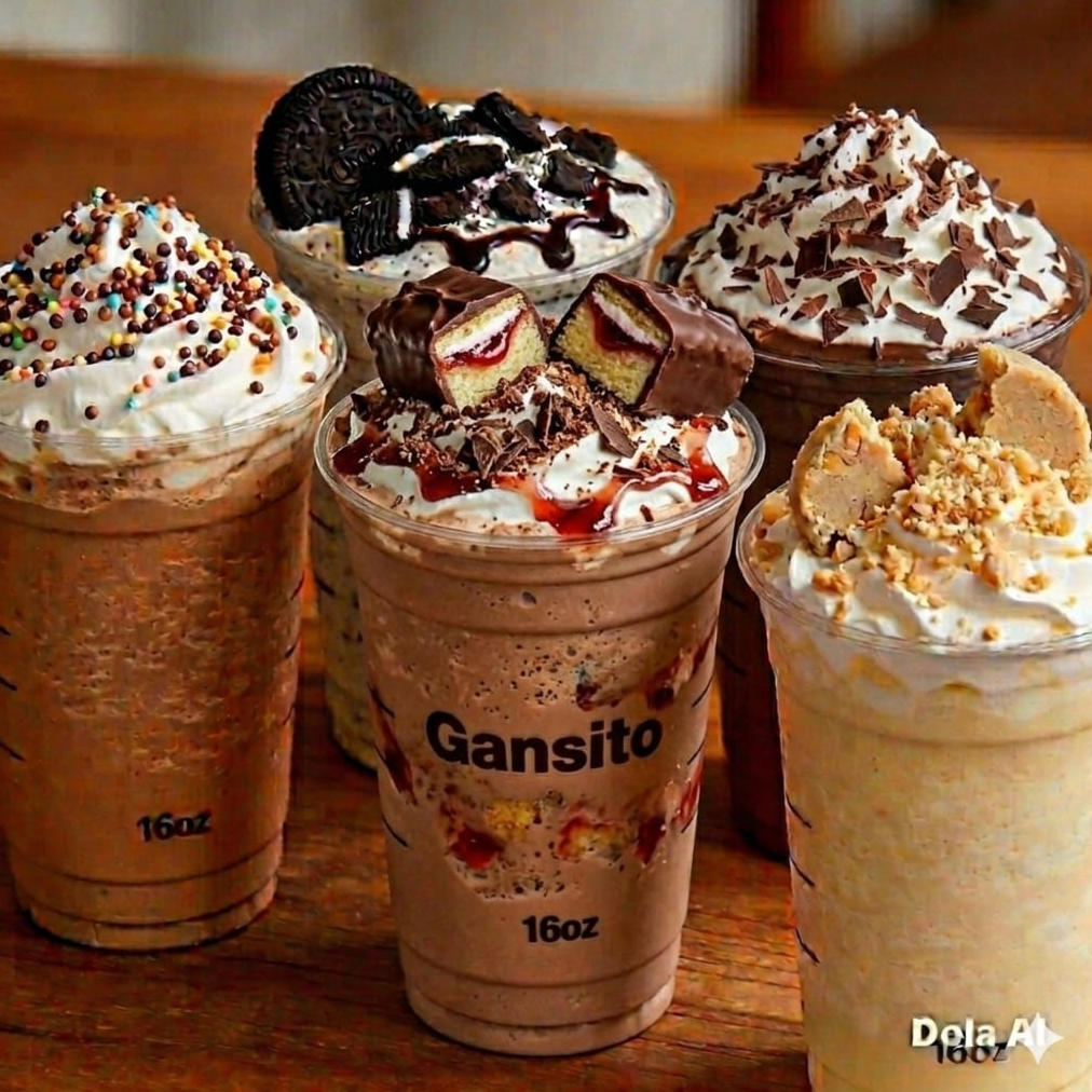 Frappé de Mazapán*1 + Frappé de Mok*1 + Frappé de Gansito*1 + FRAPPE DE OREO*1 + Frappé de Carlos V*1