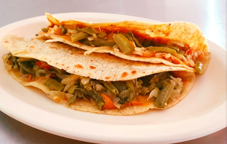 Quesadilla de Harina con nopal cocido y sazonado con hierbas mexicanas