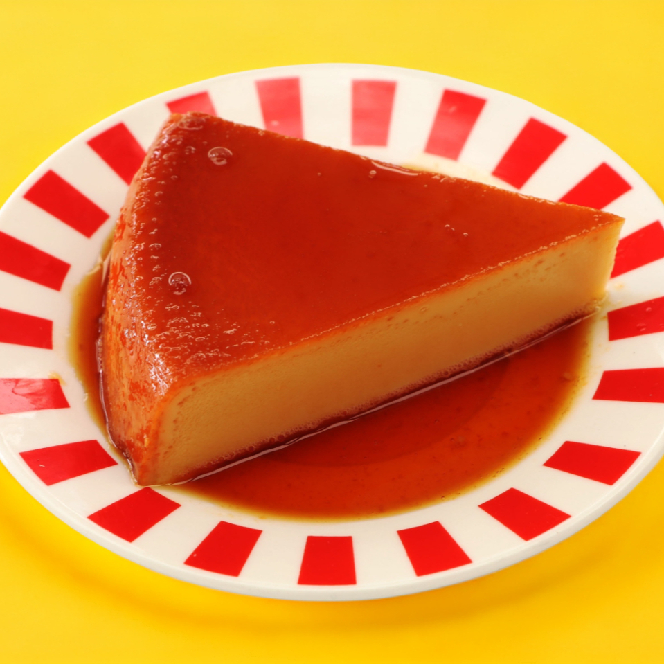 Plátano macho frito, bañado en crema y lechera.