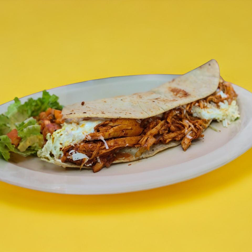 Quesadilla con tinga de pollo.
