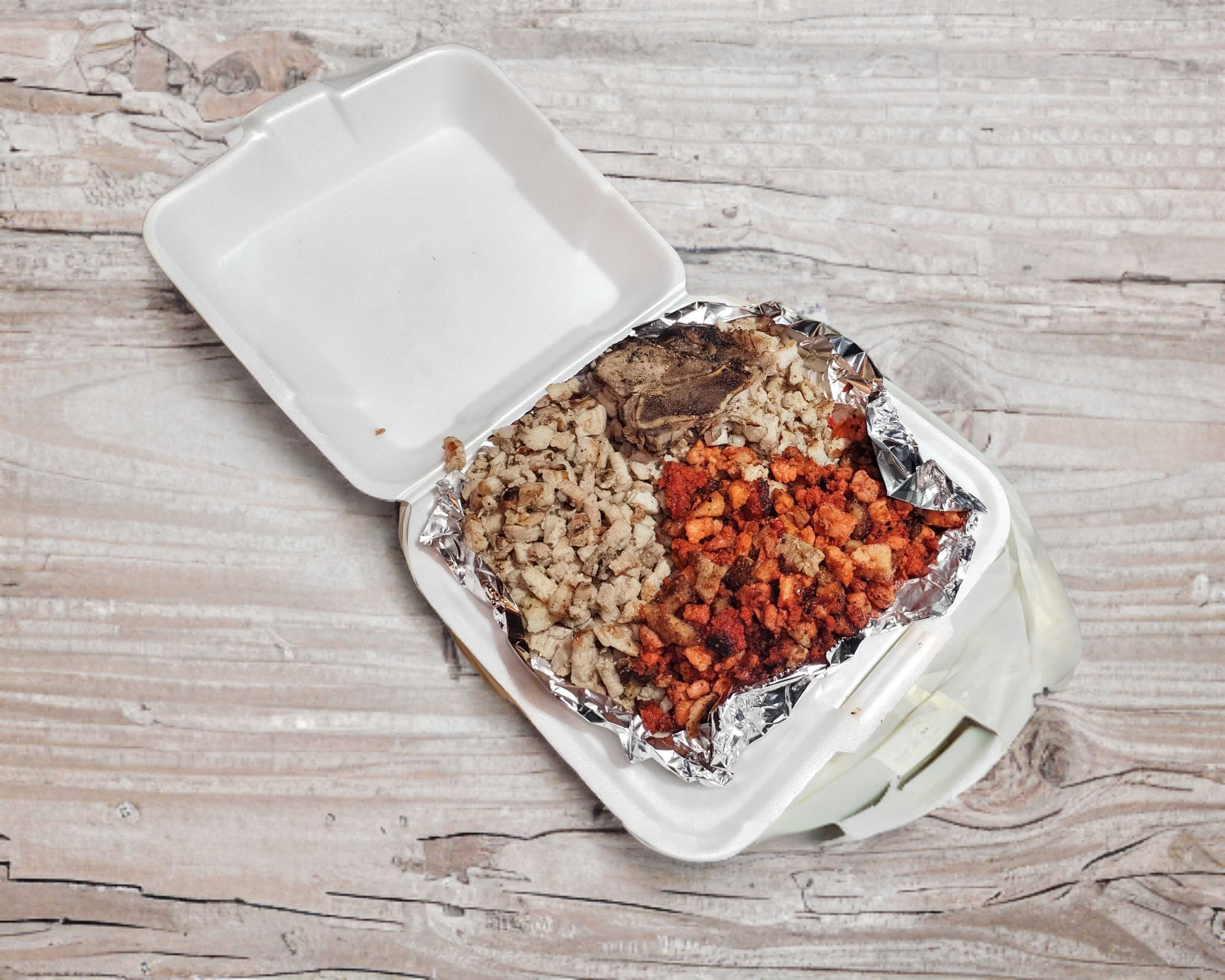 1/2 KG DE CARNES MIXTAS ( CARNE ASADA, CHULETA Y CHORIZO CASERO) , TORTILLAS HECHAS A MANO, CEBOLLA CILANTRO Y SALSAS.