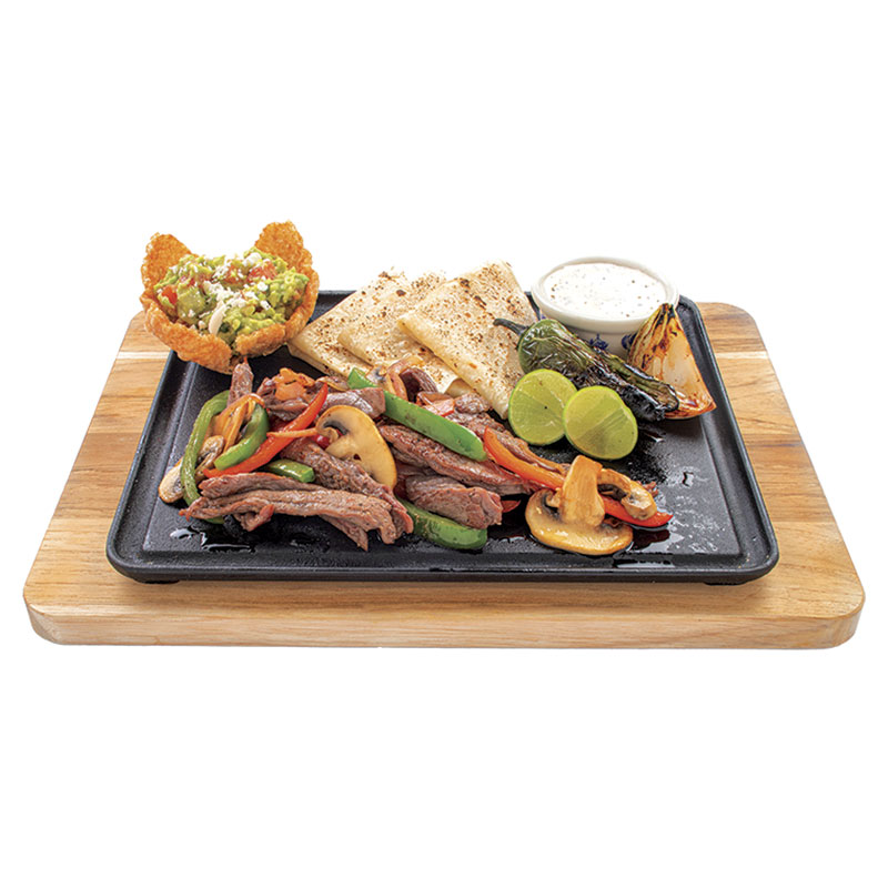 (120 g) Con frijoles refritos y nopal asado. Incluye: sopa, bebida y postre