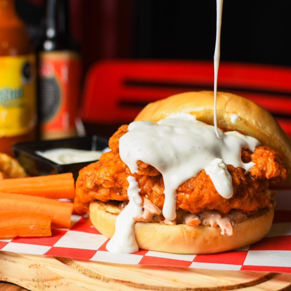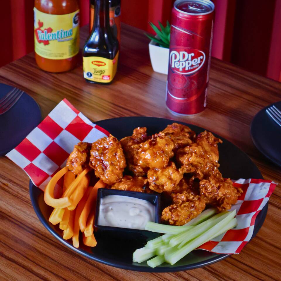 480 GRS DE BONELESS SALTEADAS EN SALSA A A ELEGIR ACOMPAÑADAS DE RANCH Y DE BASTONES APIO Y ZANAHORIA