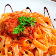 250 GRS DE PASTA FETUCCINI, SALSA TRADICIONAL BOLOGNESA, 150 GRS DE CARNE DE RES, QUESO PARMESANO ACOMPAÑADA DE 3 CROTONES CON MANTEQUILLA
